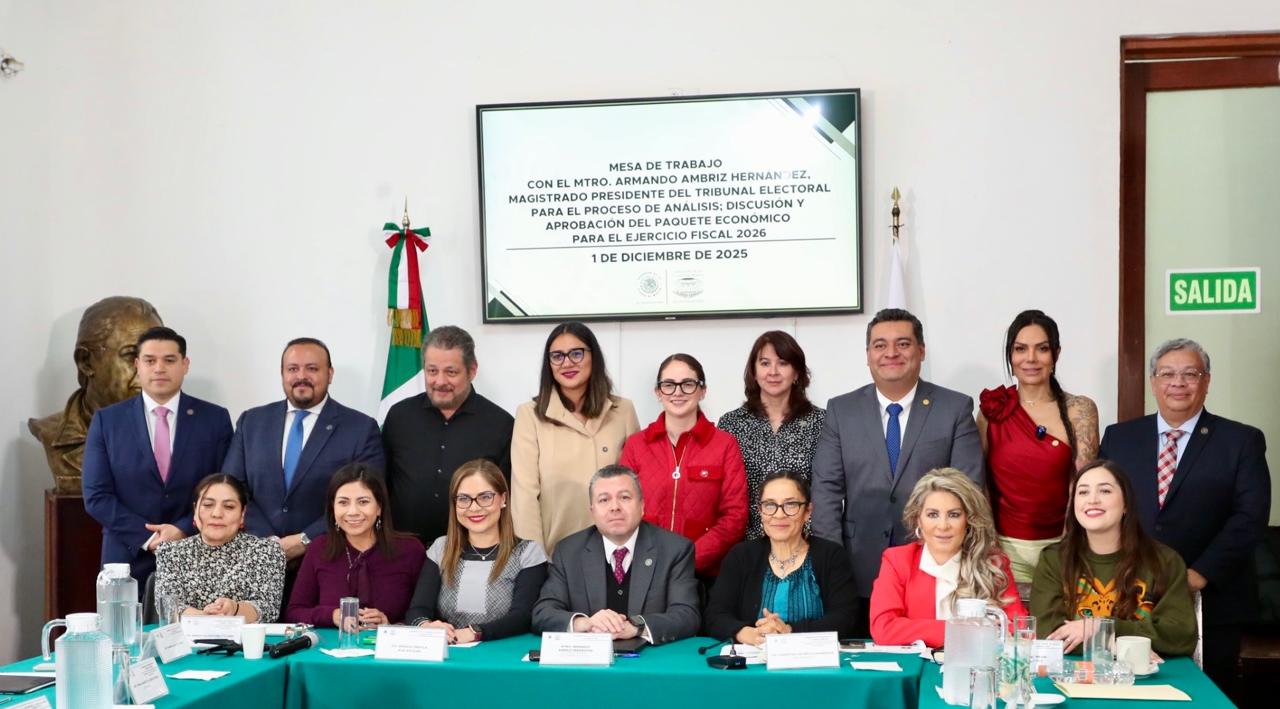 El Magistrado Presidente del TECDMX, Armando Ambriz Hernández, acompañado por la Magistrada Laura Patricia Jiménez Castillo, el Magistrado José Jesús Hernández Rodríguez, la Magistrada Karina Salgado Lunar y el Magistrado Osiris Vázquez Rangel, presentó el proyecto presupuestal 2026 ante la Mesa de Trabajo para el Análisis del Paquete Económico, conformada por las diputadas y diputados integrantes de la Comisión de Presupuesto y Cuenta Pública ante del Congreso de la Ciudad de México.
