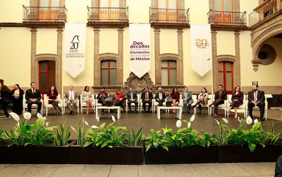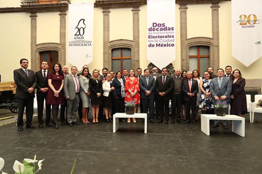 El Magistrado Presidente Gustavo Anzaldo Hernández, las Magistradas M. Alejandra Chávez Camarena, Martha Leticia Mercado Ramírez y los Magistrados Armando Hernández Cruz y Juan Carlos Sánchez León, conmemoraron dos décadas de instituciones electorales junto al Instituto Electoral de la Ciudad de México.